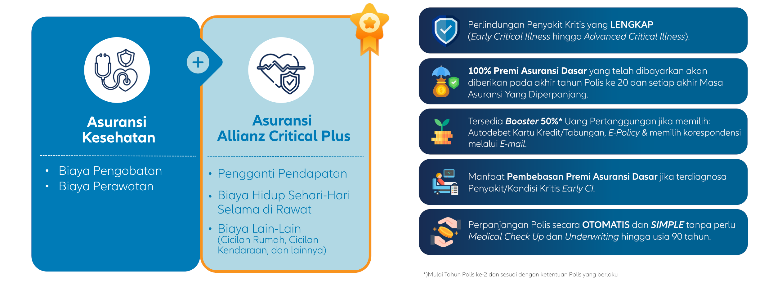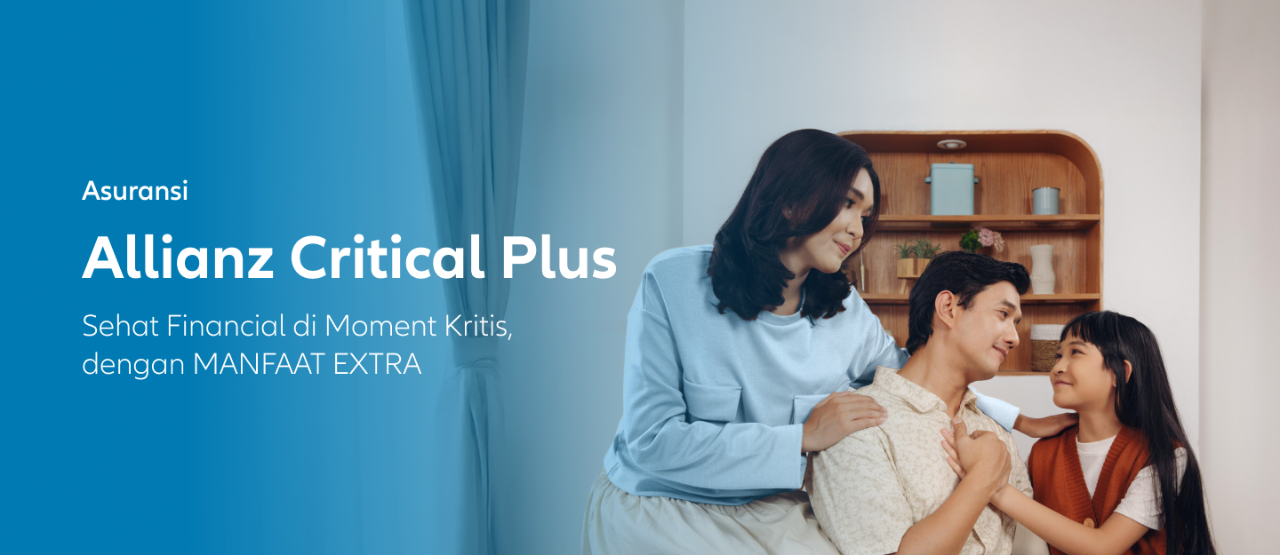 Bebaskan rasa khawatir karena risiko penyakit kritis. Saatnya Allianz Critical Plus (ACP) memberikan perlindungan finansial yang optimal untuk Anda dan keluarga.