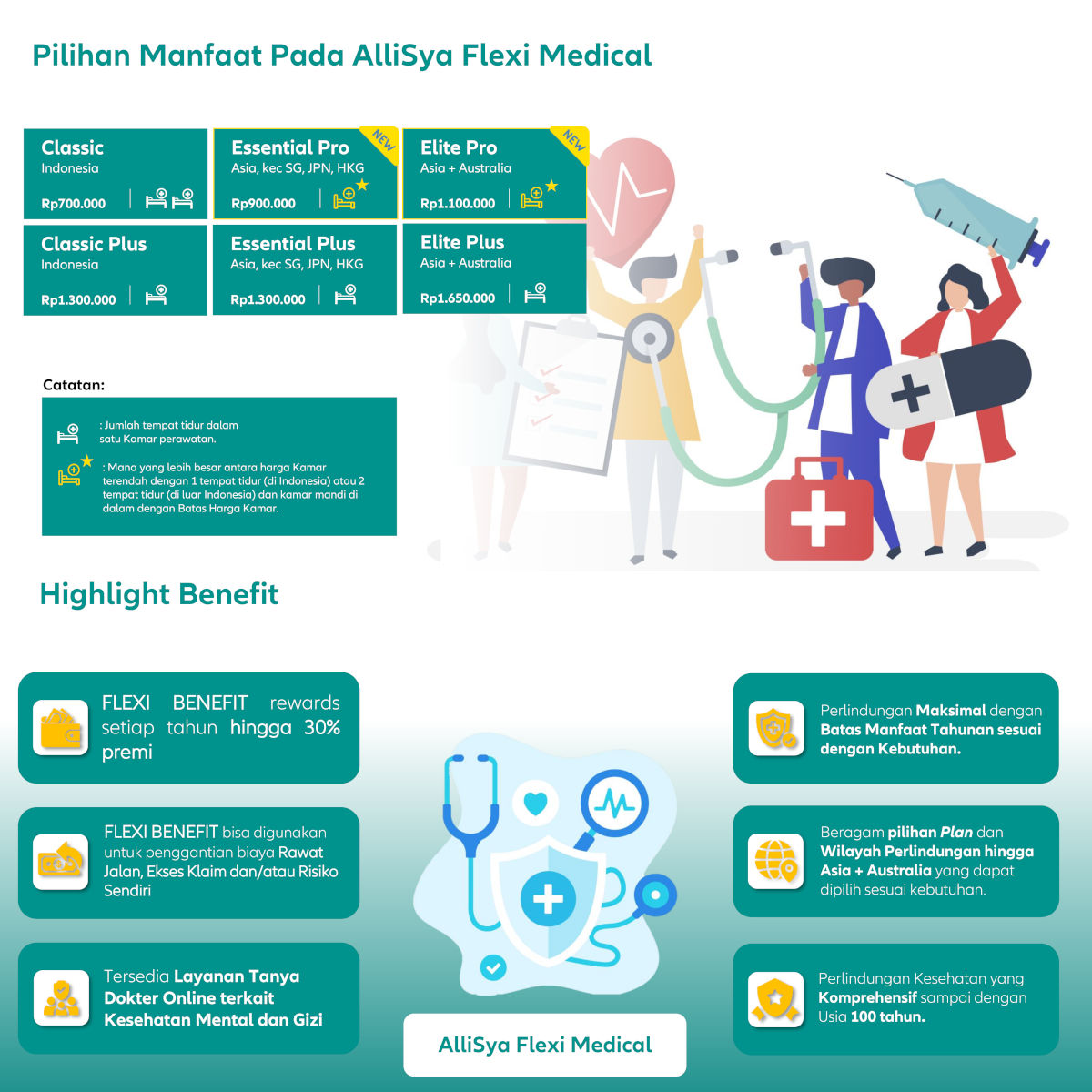 AlliSya Flexi Medical merupakan produk asuransi kesehatan individu yang memberikan manfaat komprehensif dan fleksibel sesuai perlindungan yang Anda butuhkan.