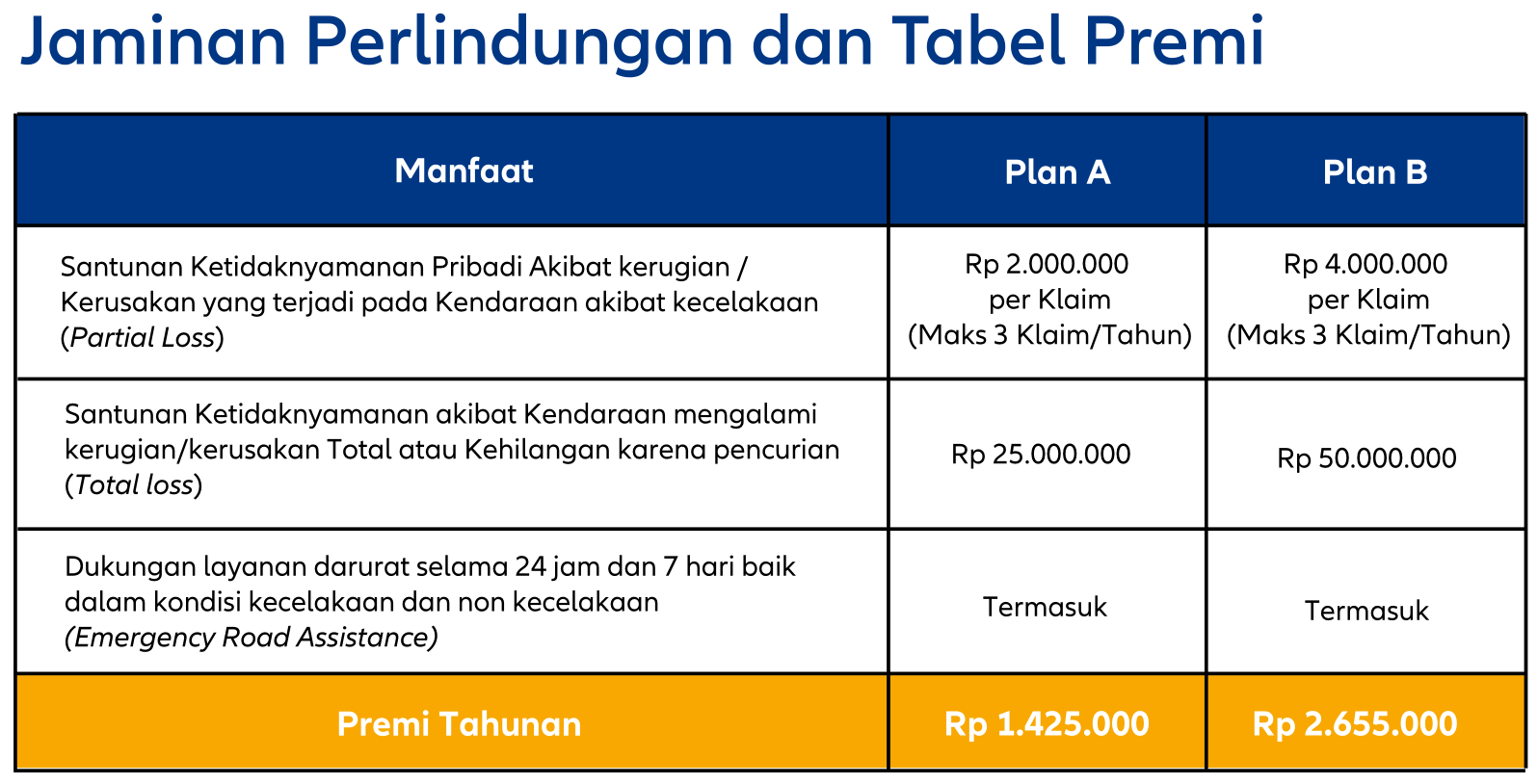 (Premi belum termasuk biaya meterai dan ongkos kirim yang akan ditambahkan ke total Premi yang harus dibayar)